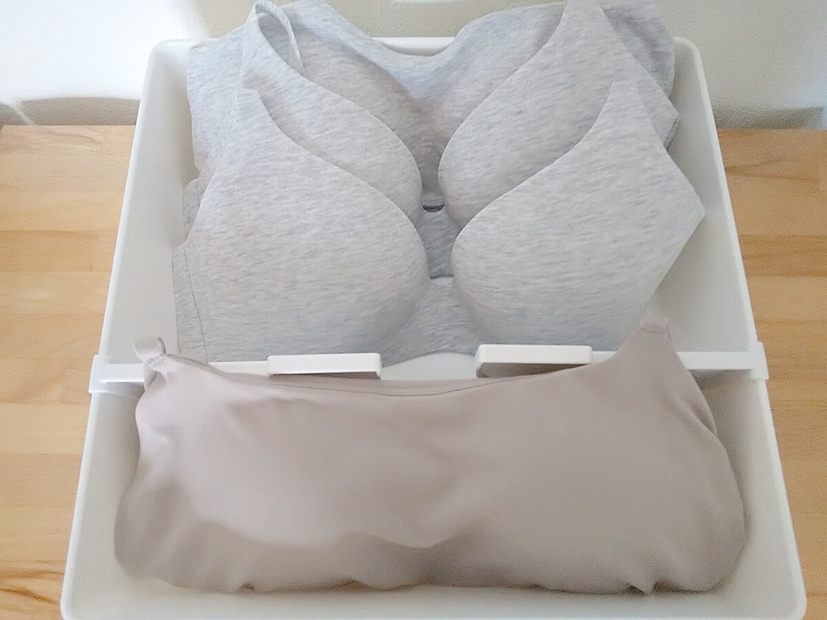 ワイヤー入りのブラの場合、6~7枚くらいが適切な量かな?詰めればもっと入りますが、取り出しにくくなるのでおすすめしません。