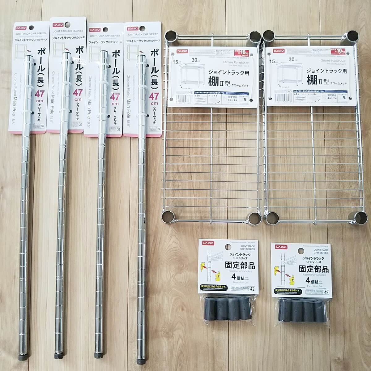 ダイソーのスチールラックは、棚やポールのサイズが豊富なので希望の大きさのラックを作ることができます。詳しくご紹介しますね。