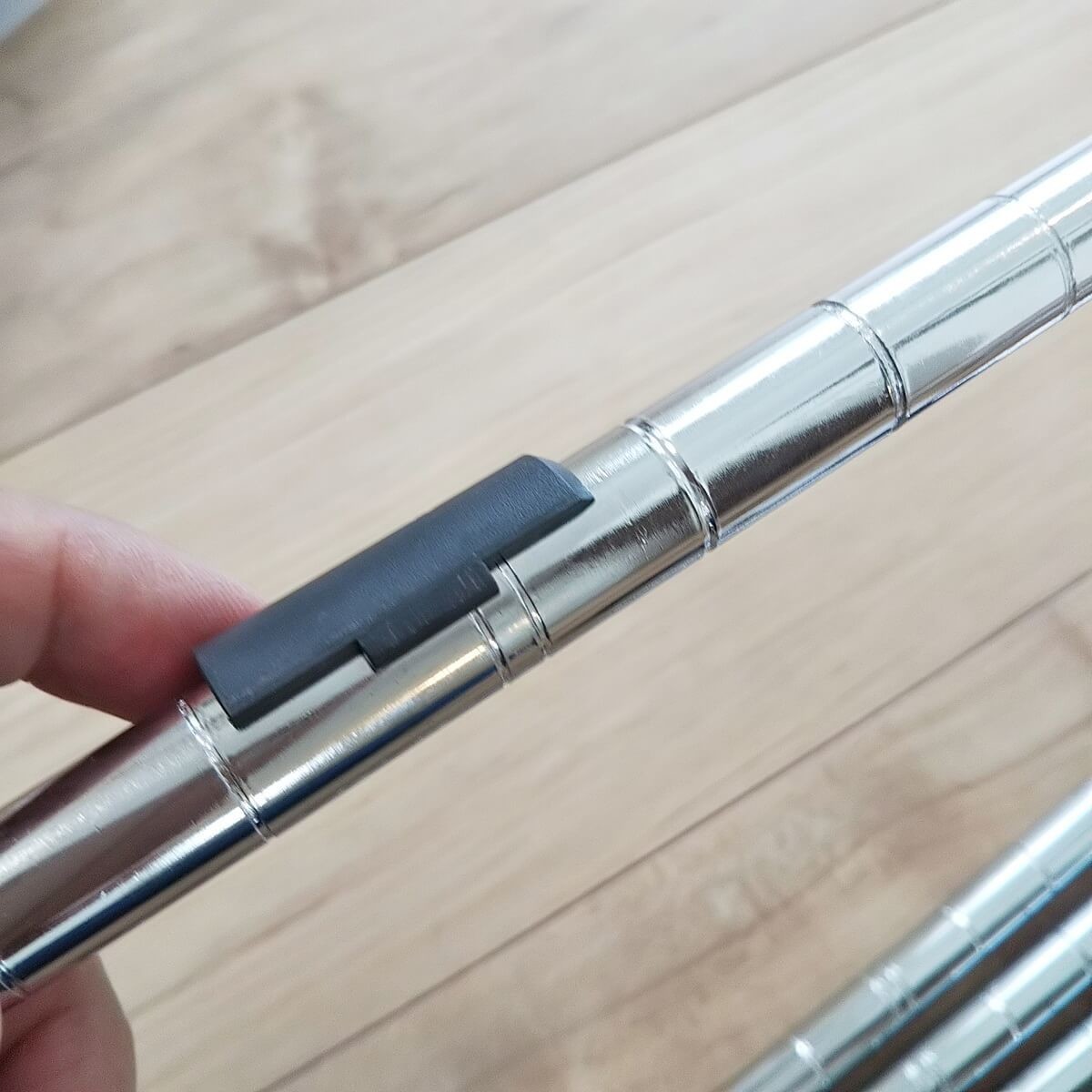 ポールに固定部品をはめる(下段から組み立てます)。内側の凹凸に合わせて取りつけます。上下の向きに注意。