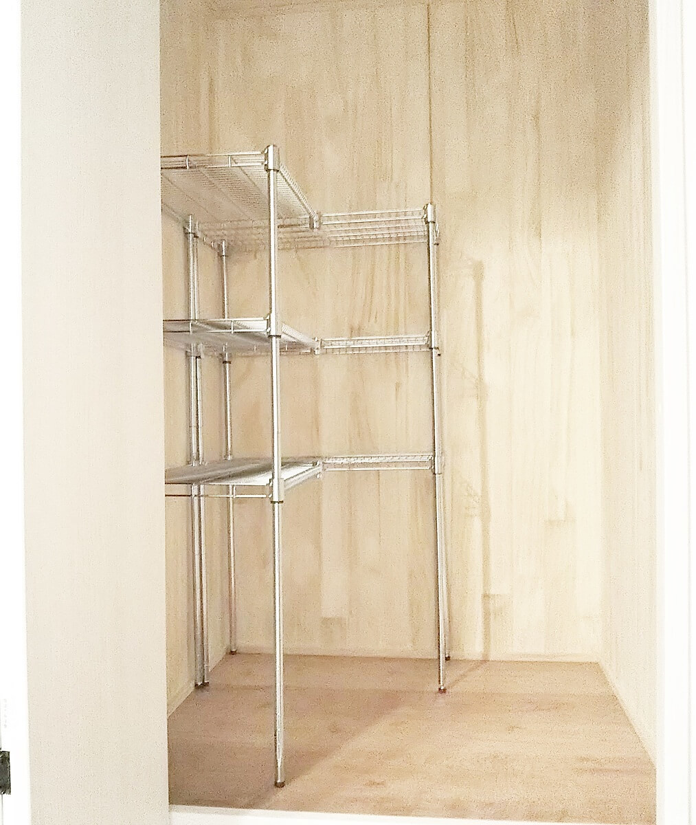 他のサイズの棚と延長ポールを使って、クローゼット内のラックも作りました。