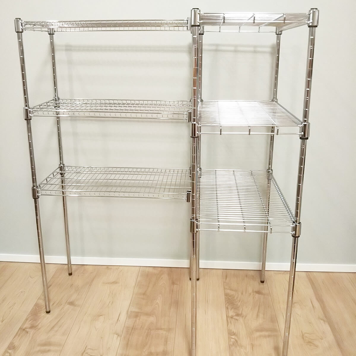 スチールラック(メタルラック)は、そんな悩みを解決してくれる優れものなんです!高さが足りなければパーツを買い足して棚を増やすなど、調節も自由自在。