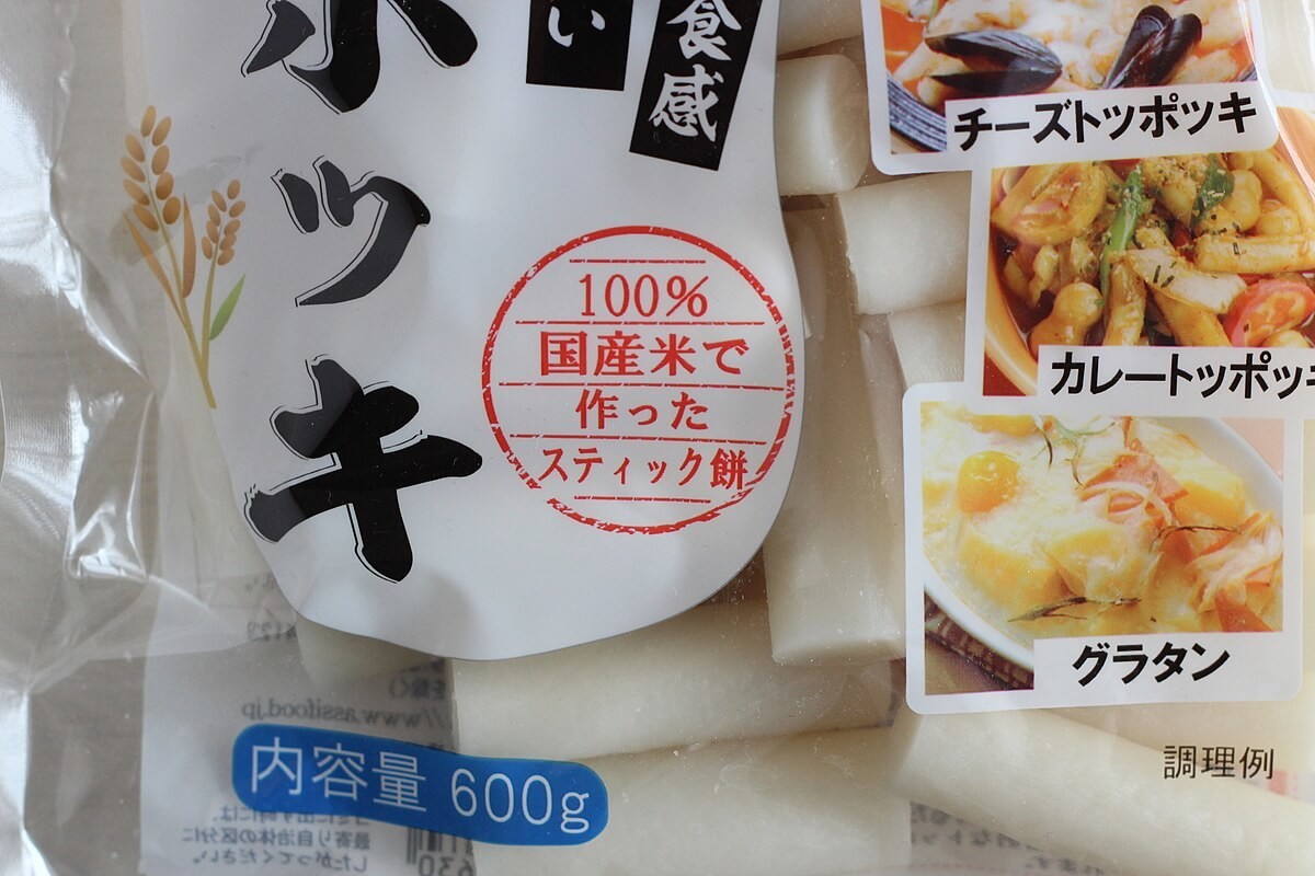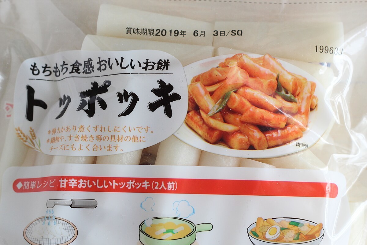 コチュジャンベースで作ったたれに、日本で言うさつま揚げのようなものを入れたりして煮込んだ料理で、トッポキはパッケージにもあるように、まさに”スティック餅”。
