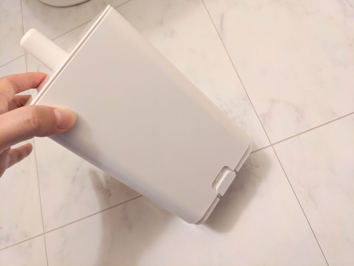 無印良品のトイレポットは、カバーが外れないようロックできるようになっています。