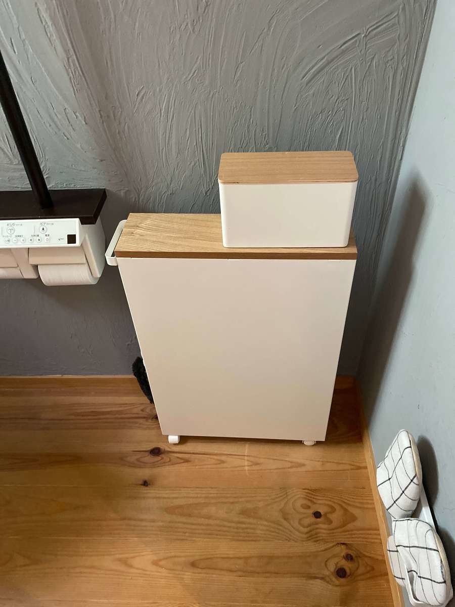 ダストボックスはシンプルカラーなので、ぱっと見では見えにくいところもトイレ収納には嬉しいポイントです。