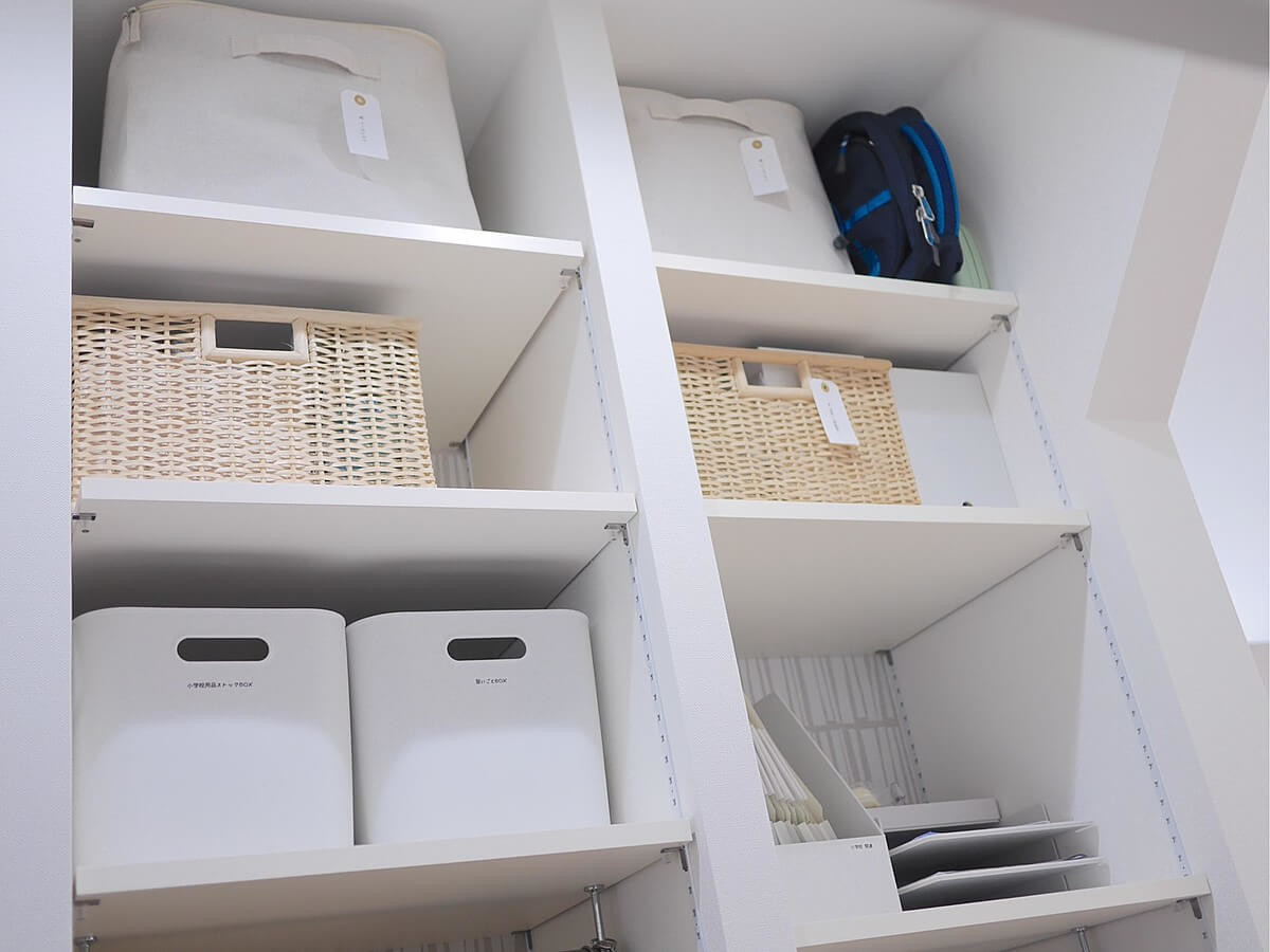 子どもが中学生や高校生になる頃には背も高くなっていると思うので、下から上まで自分が思うように棚の高さや収納を考えて管理することを覚えてもらえたらいいなぁと思います。