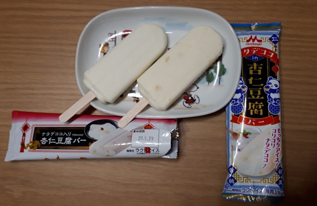 シャトレーゼではナタデココ入り杏仁豆腐バー、食べ比べするアイスクリームは森永乳業のナタデココin杏仁豆腐バー。