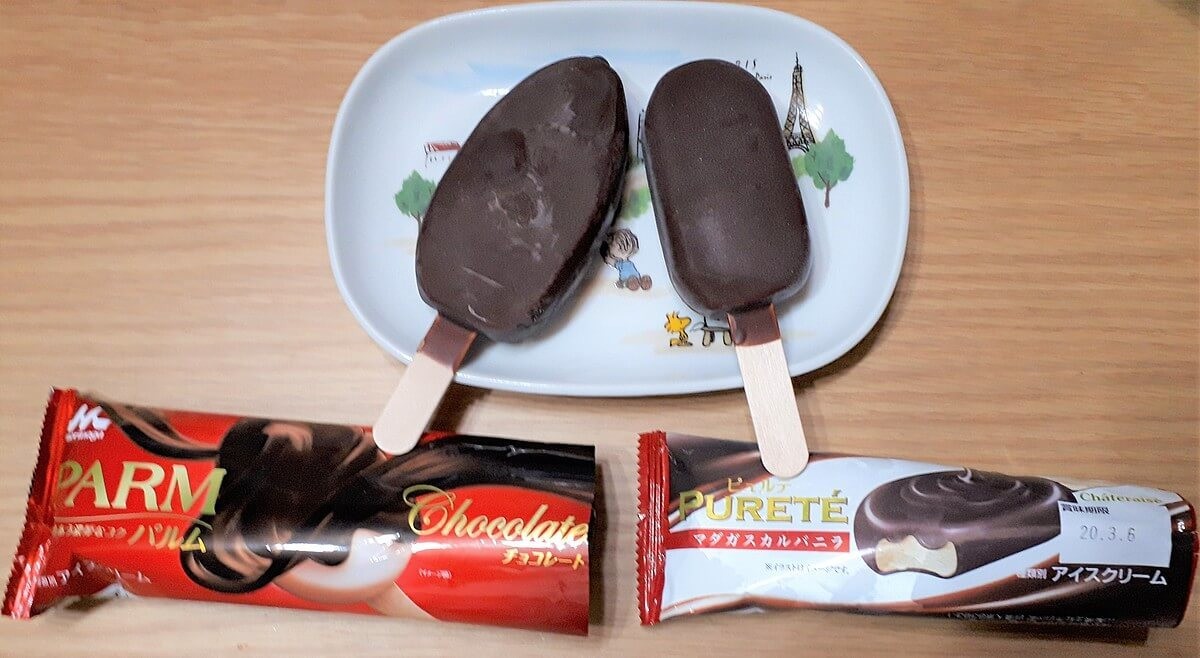 テレビCMでもお馴染みのPARM(パルム)チョコレートと食べ比べてみました。