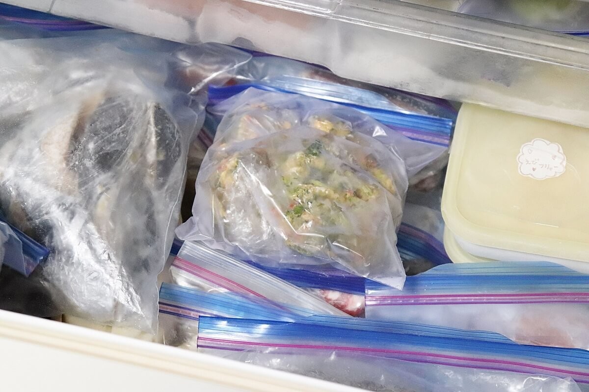 ③冷凍食品は上に積まずに、ひと目で見えるように縦に並べる。