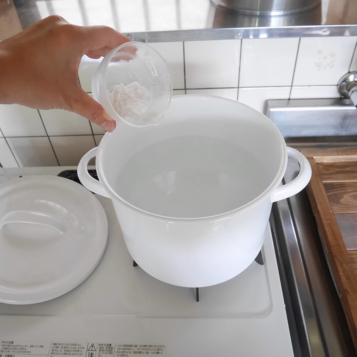重曹を使うので、お鍋は琺瑯やステンレスが適しています。