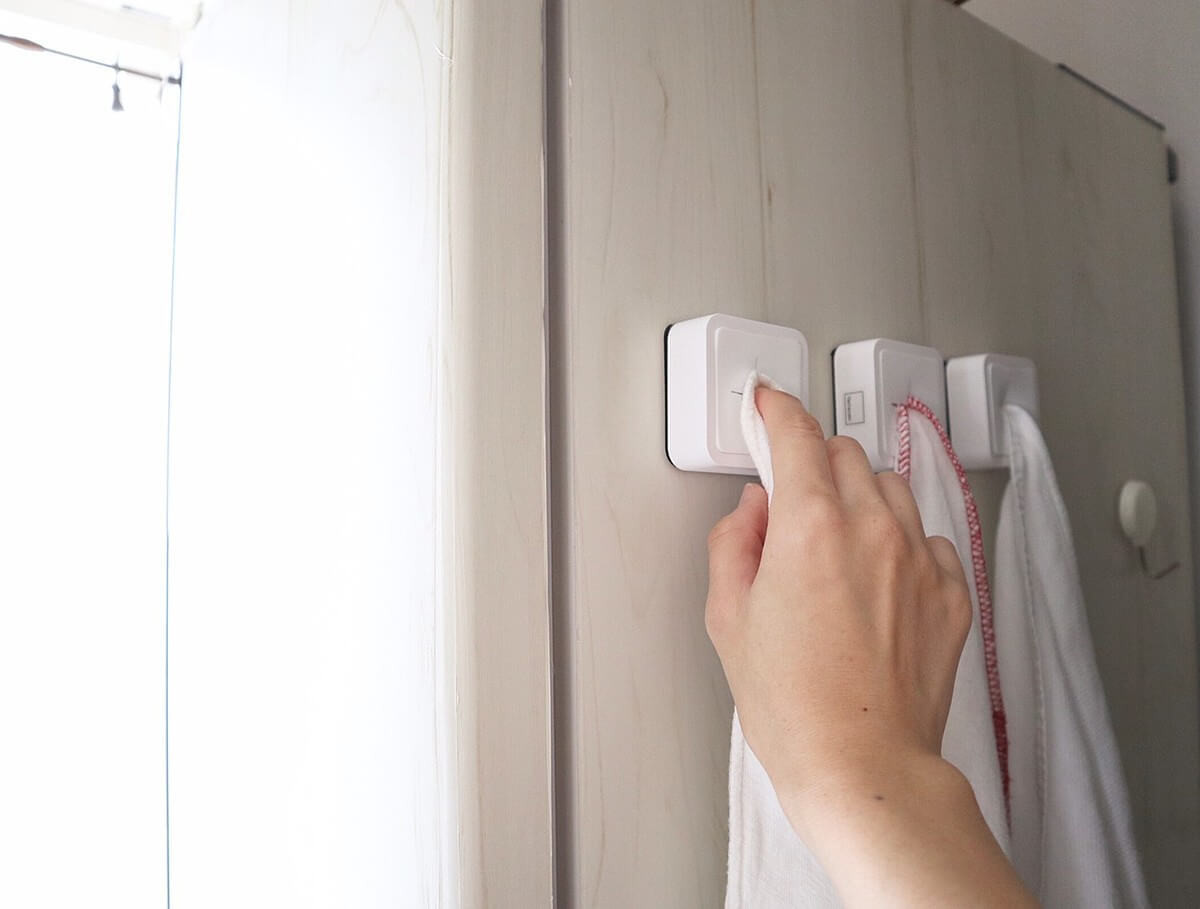 そんな空間を利用してすっきり収納できるこちらのタオルホルダー。シリコンの切り込み口に指1本でタオルを差し込むだけ。