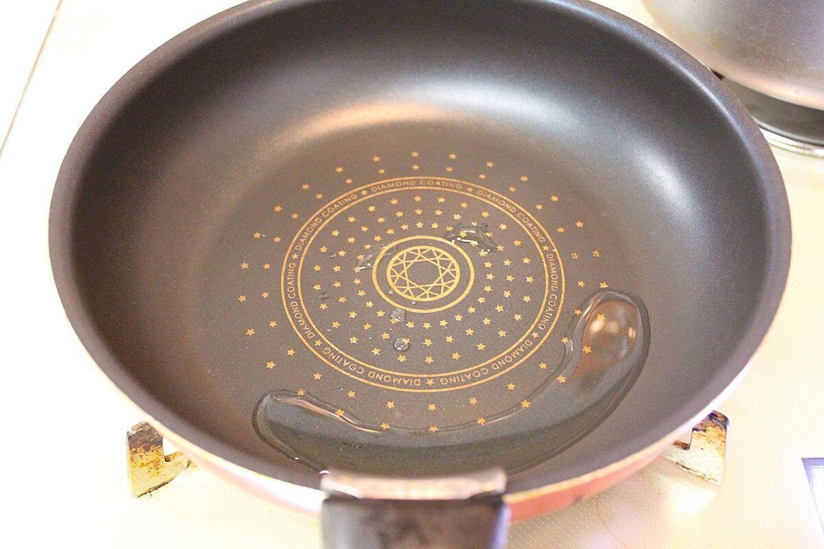 (2)熱したフライパンに油をひき、(1)を入れて中火で切るように炒めます。