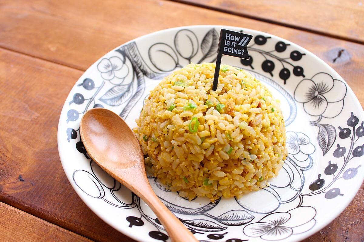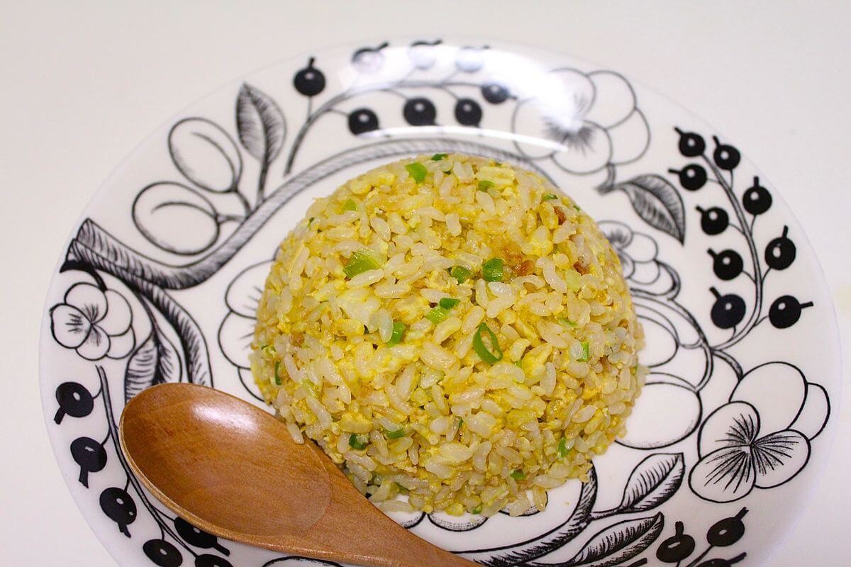 お椀に、できあがったチャーハンを入れて、お皿にあけます。