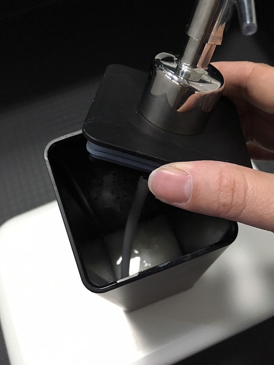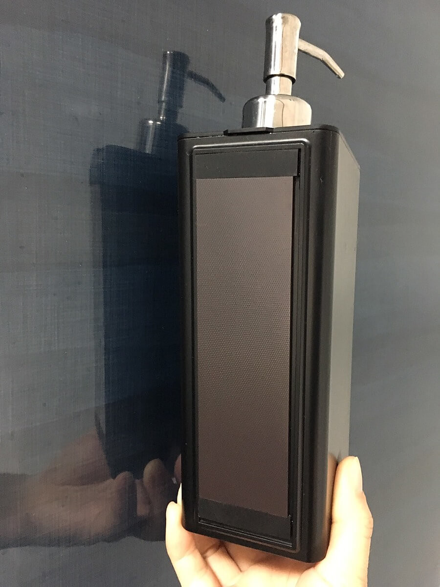 ポンプ式でマグネットもかなり強力なものですが、押す力によっては少しずつ下にずれることがあるので、押すときは壁に向かって押すとズレないみたいです!
