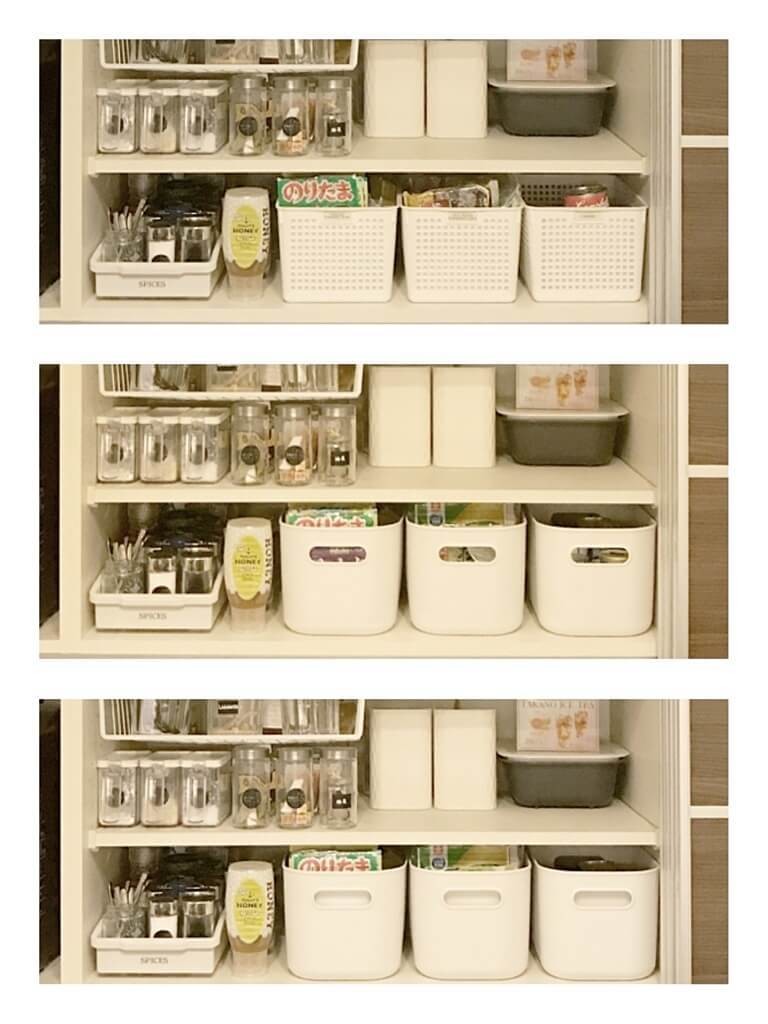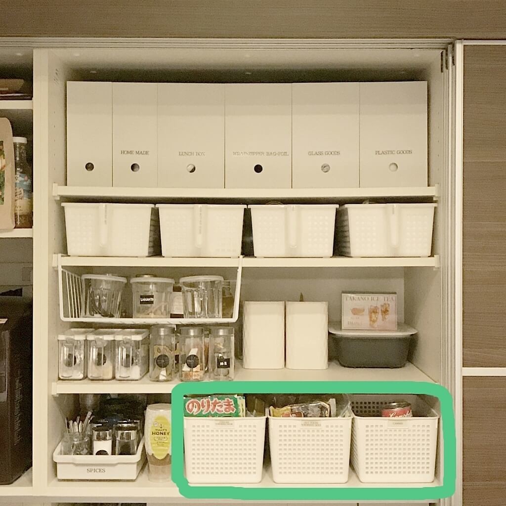 100均のカゴより高さがあるので、”のりたま”の文字も半分隠れました(^.^)