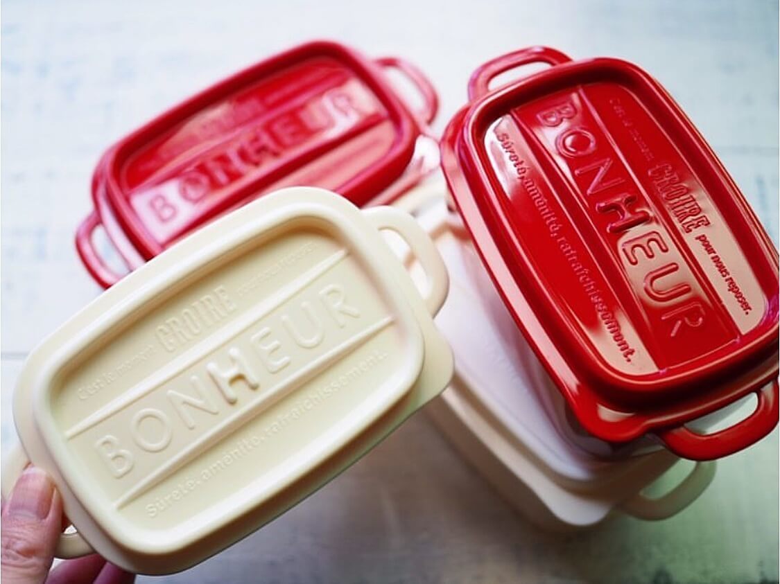 ▲ボヌールランチスクエアLL レッド/クリームホワイト 各100円(税抜)