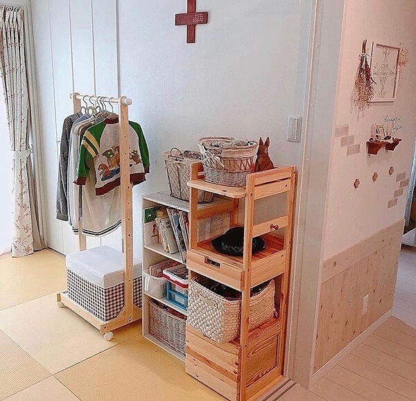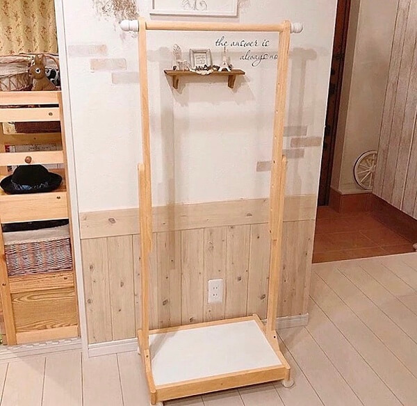 子ども達用にもハンガーラックがあれば、子ども達も自分で服を取りやすいし、しまいやすく大変便利です(o^^o)♪