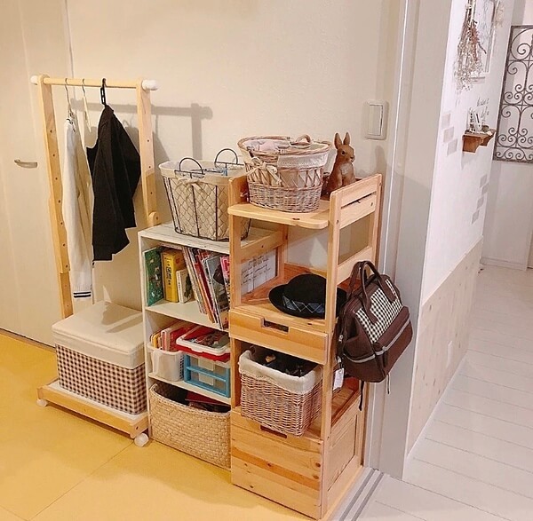我が家の和室は、子どものおもちゃや幼稚園グッズ、タンスなど、子ども達の洋服や物の収納場所でもあるので、この場所にハンガーラックがあるととても便利です。