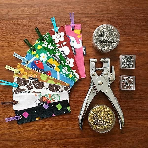 ハトメパンチは紙だけでなく布にも使用できますので、手作りのしおりなども作ることができます。