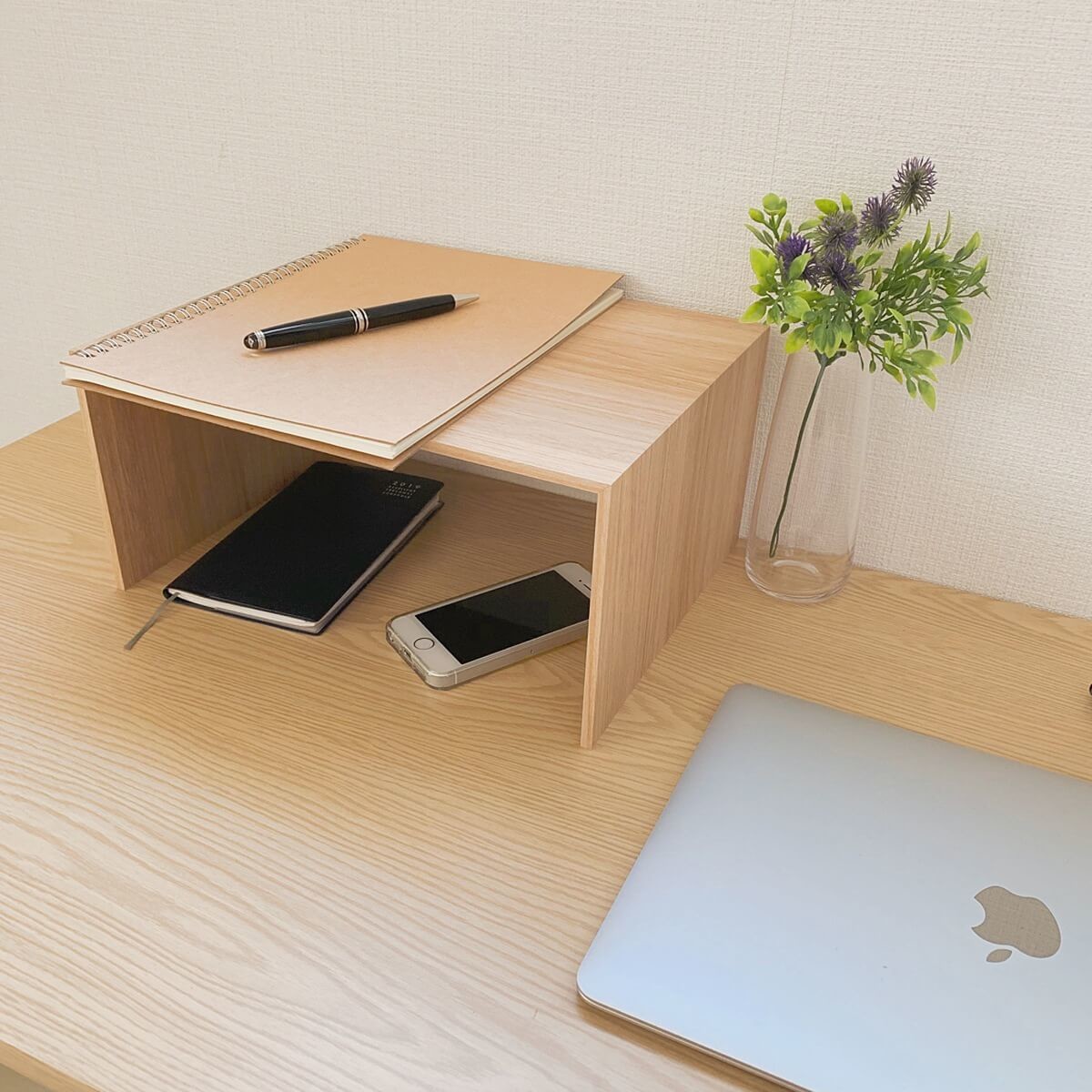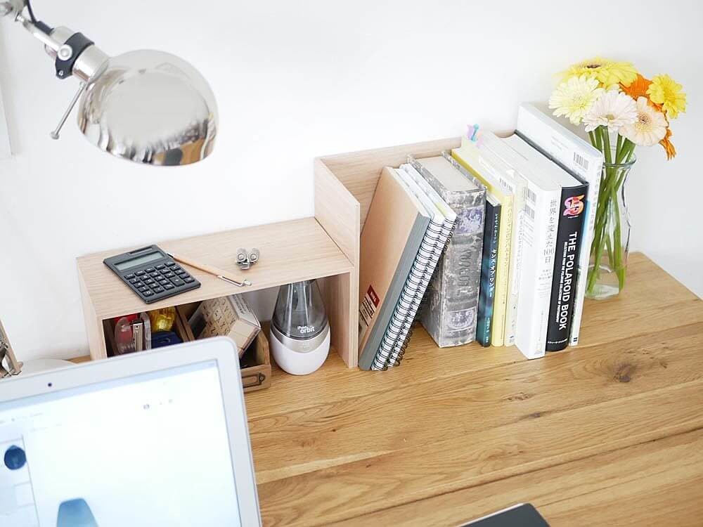 デスクの上で使えば細かいモノを置く棚としてはもちろん、横向きにしてブックスタンドとして使うこともできます。