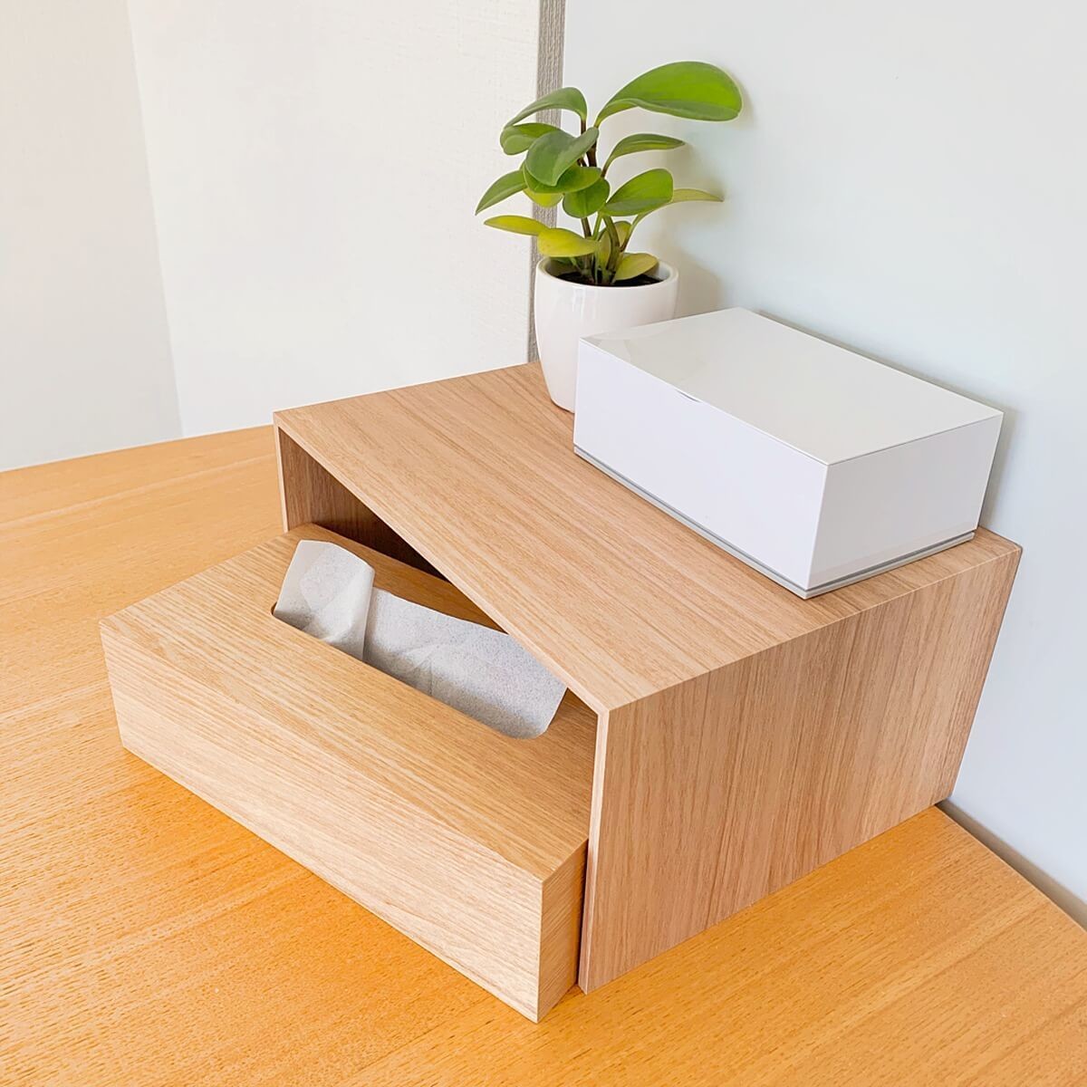 ダイニングテーブルの上でティッシュ置き場として使うのも良いですね。 上にお花を飾るのも楽しそうです。