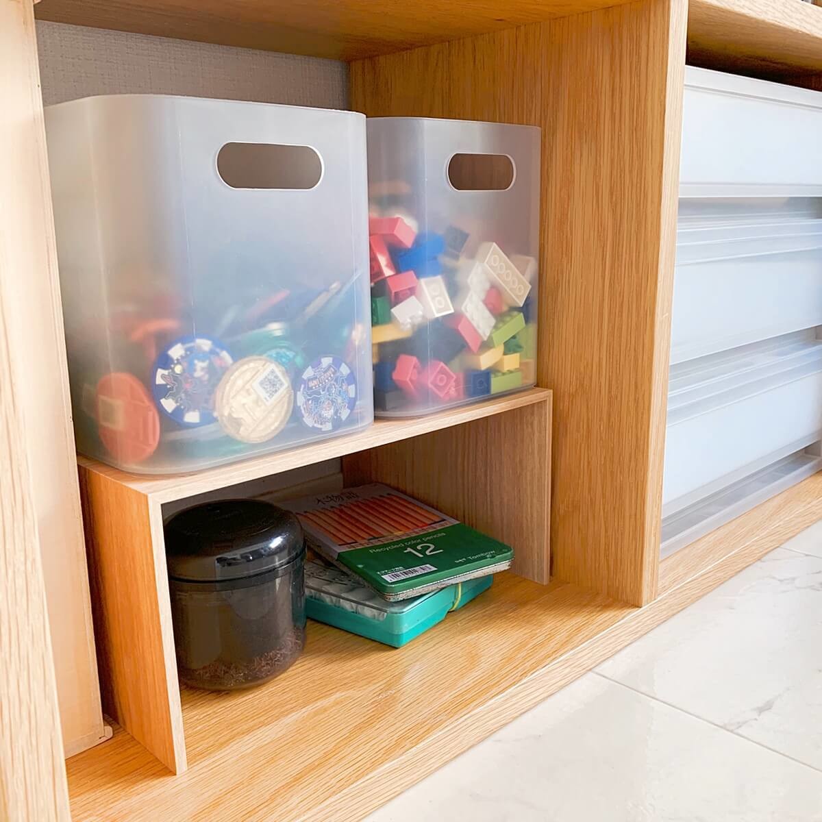 カラーボックスの中に使って収納空間を増やしたりするのも良いですね。
