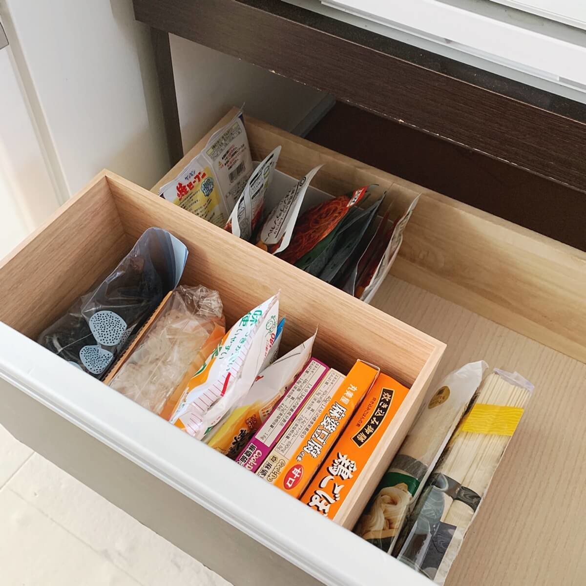 システムキッチンの引き出しなど背の低い収納の中で使えば仕切りとして使うこともできますね。
