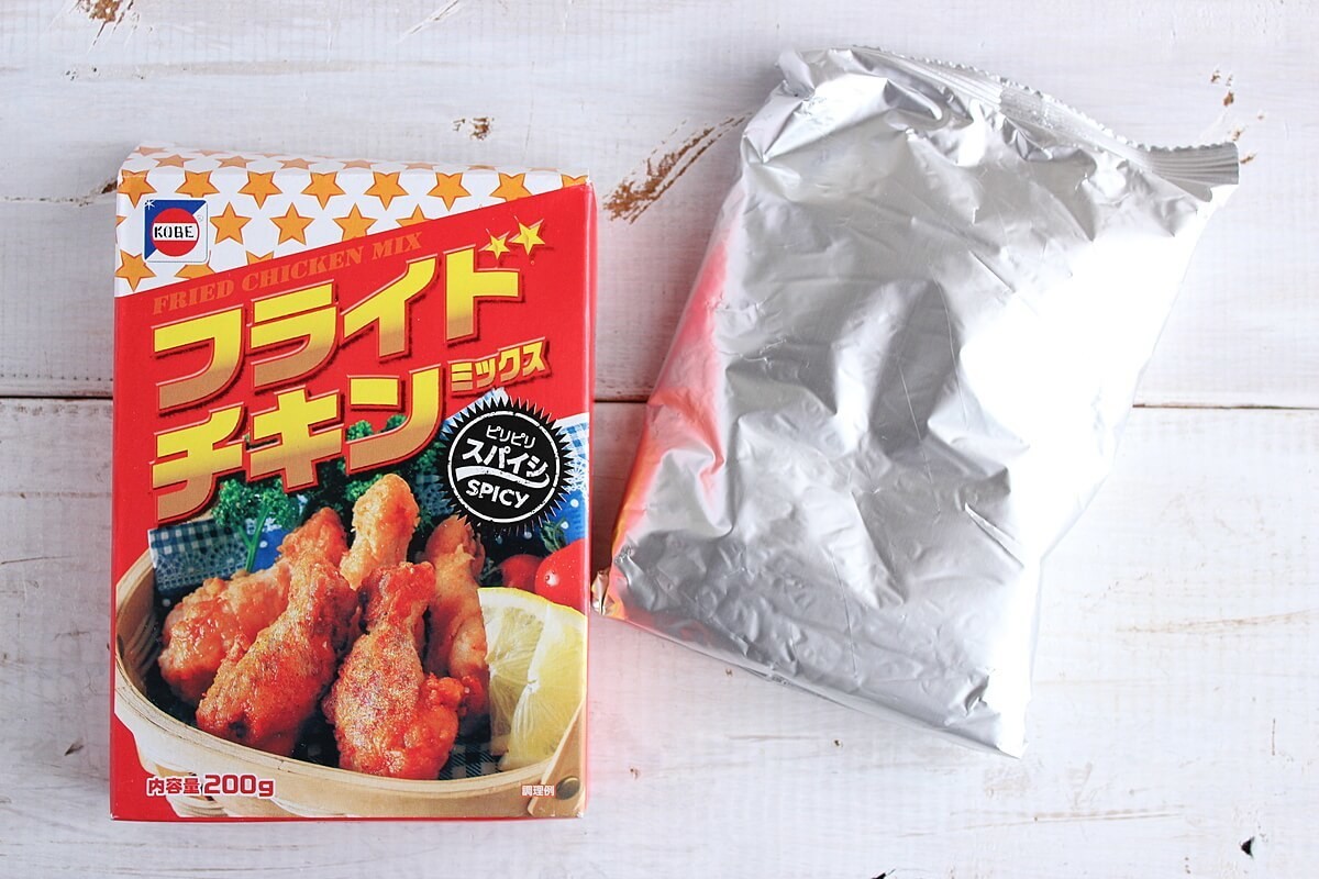 フライドチキンミックススパイシーをつけ、油で揚げる