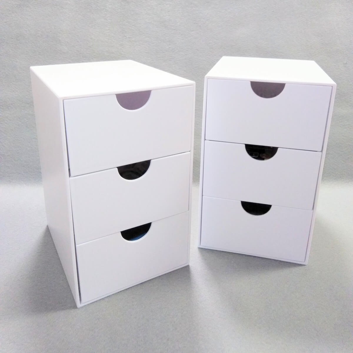 発売直後は品切れ続出でなかなか購入できなかった「3段引き出し」。 しっかりした素材でマットな質感、クオリティが高くとても良い商品なので大人気なのにも納得です。 引き出しがブラックバージョンや、ペン立て付きタイプもあります。