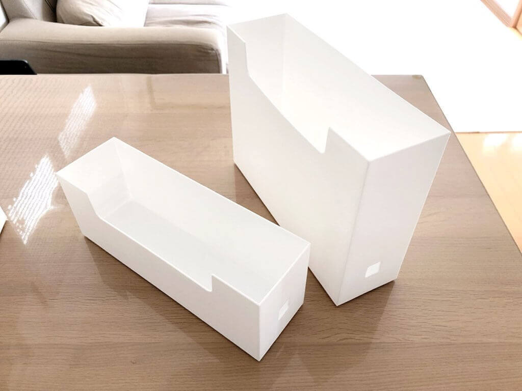 ダイソーのものはゆがみや個体差がありますが、無印良品は個体差が少なく、きっちり積み重ねることができます。ただし、「重ねずに入れるだけ」なら、ダイソーでも十分ではないでしょうか。