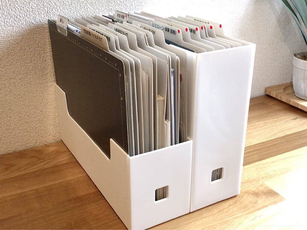 ダイソーのファイルボックスは、正面の穴が四角いデザインになっています。