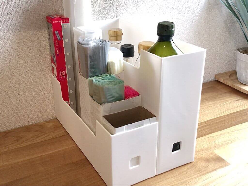 また、ラップやホイル、ジッパー袋などを立てて収納するのにも良さそう。