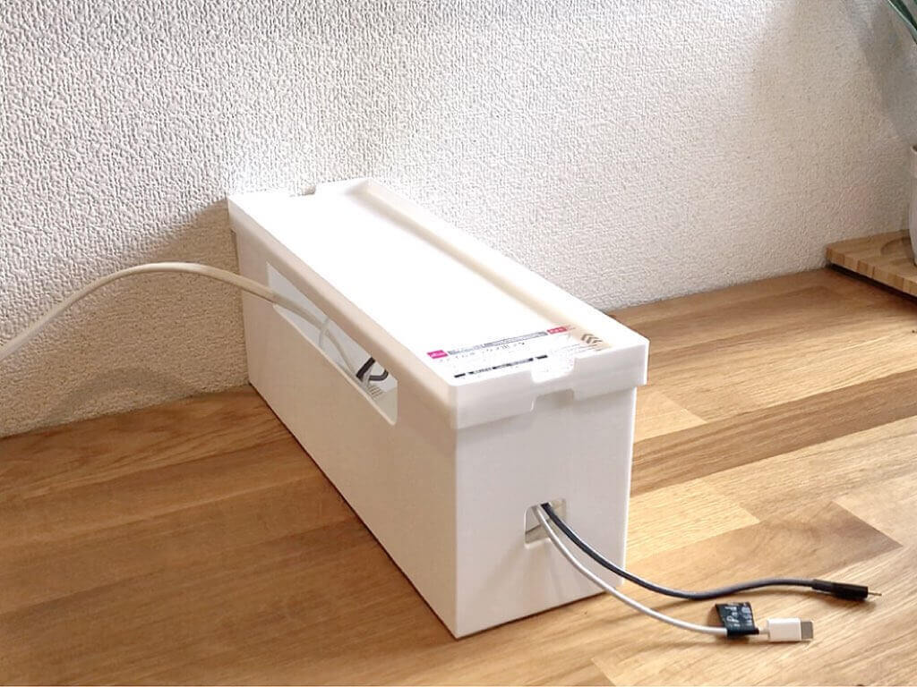 最後に、ファイルボックス用フタを活用して、電源タップ隠しとして使ってみました。