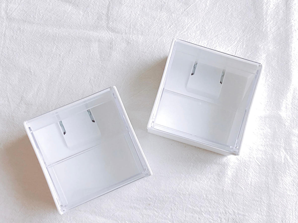 底面にはL型の脚があるので、ボックスどうしを重ねることもできます。
