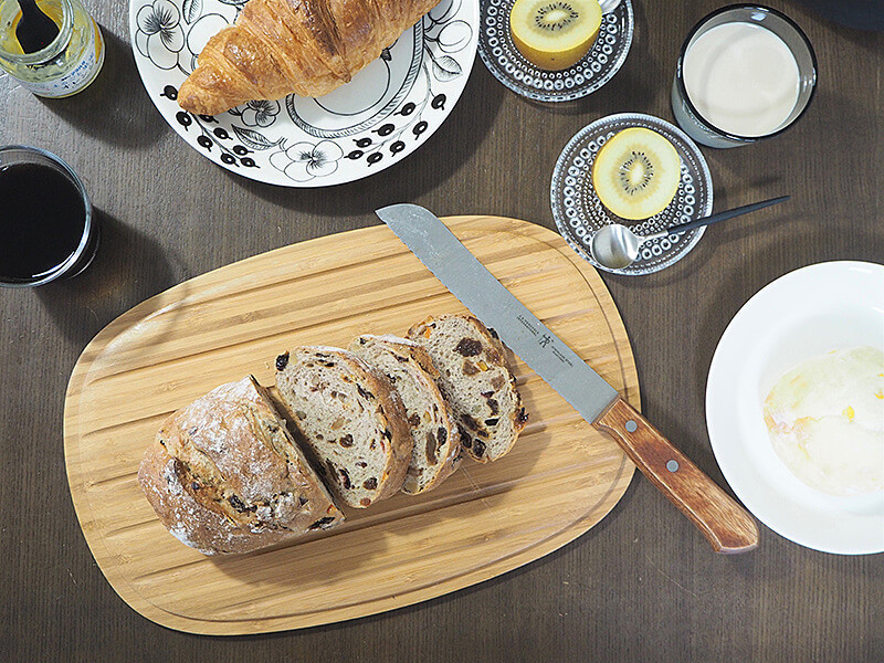 テーブルにブレッドボックスごと持って行って、その場でパンを切ってサーブすることもできますよ。