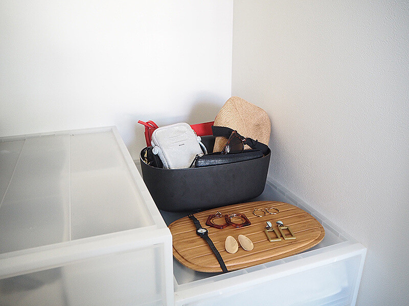 そして何より、周りのインテリアに自然と馴染み、どんな場所・物でも使えて程よい収納量があるケースは、賃貸暮らしのわが家にとって頼もしい存在です。