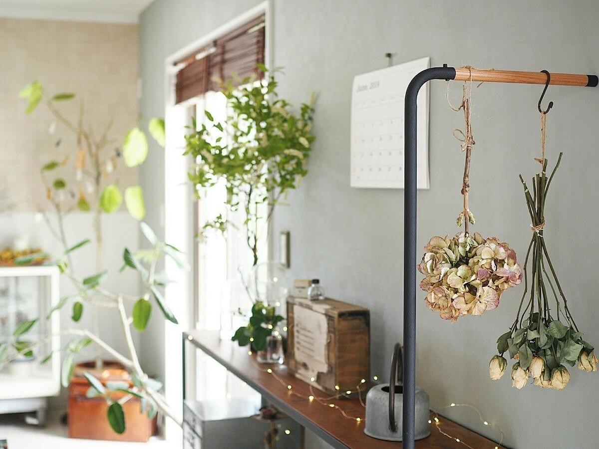 また収納以外にも、グリーンやドライフラワーなどをぶら下げて、インテリアに使うのもオススメ。