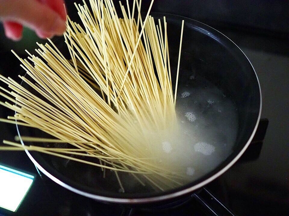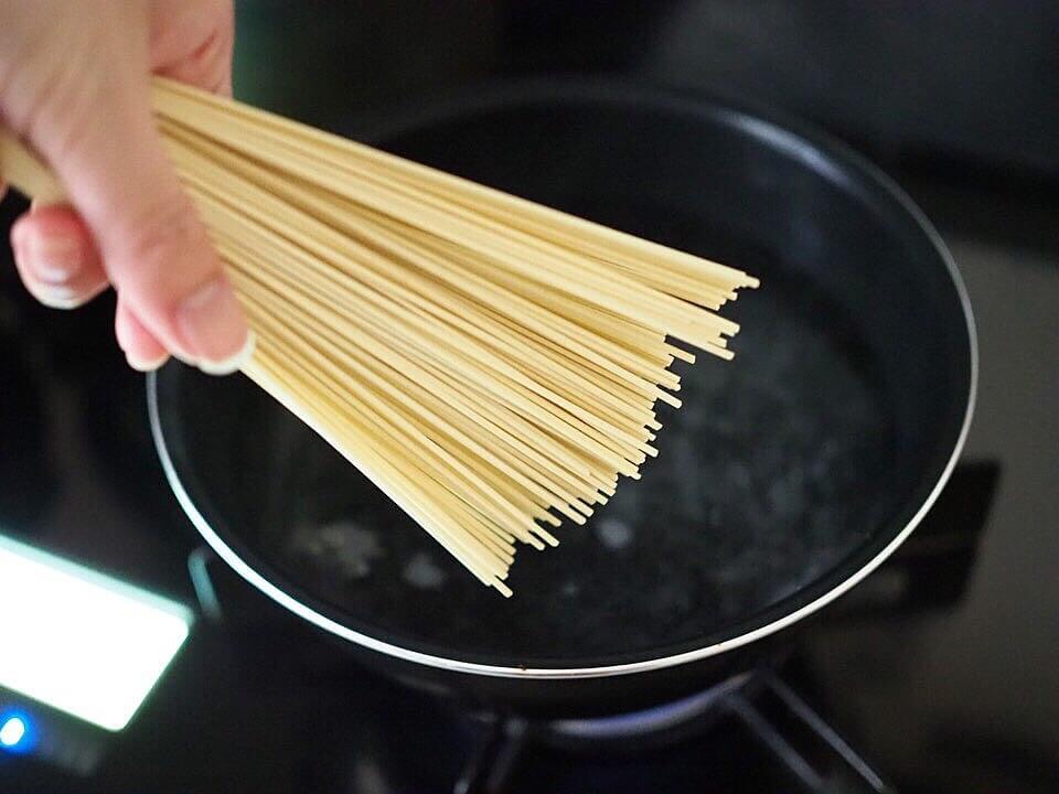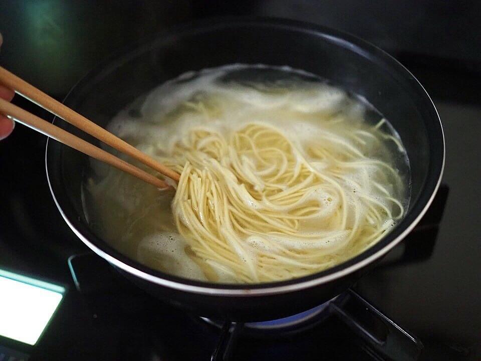 鍋に450mlのお湯を沸かして、3分間茹でていきます。