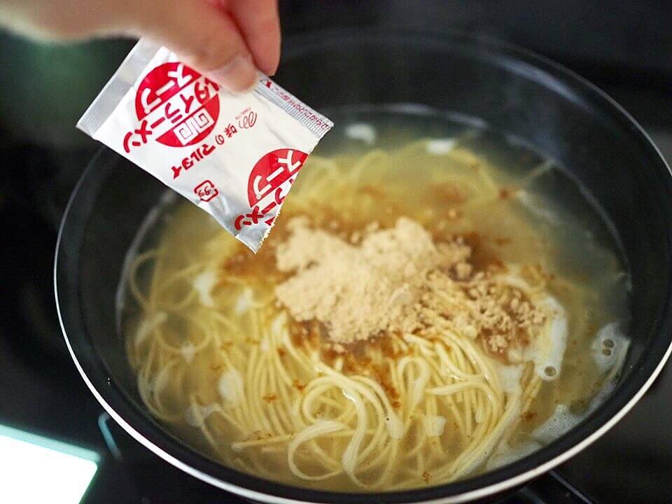 麺が茹で上がったら火を止め、スープ・調味油を混ぜるだけで完成です!
