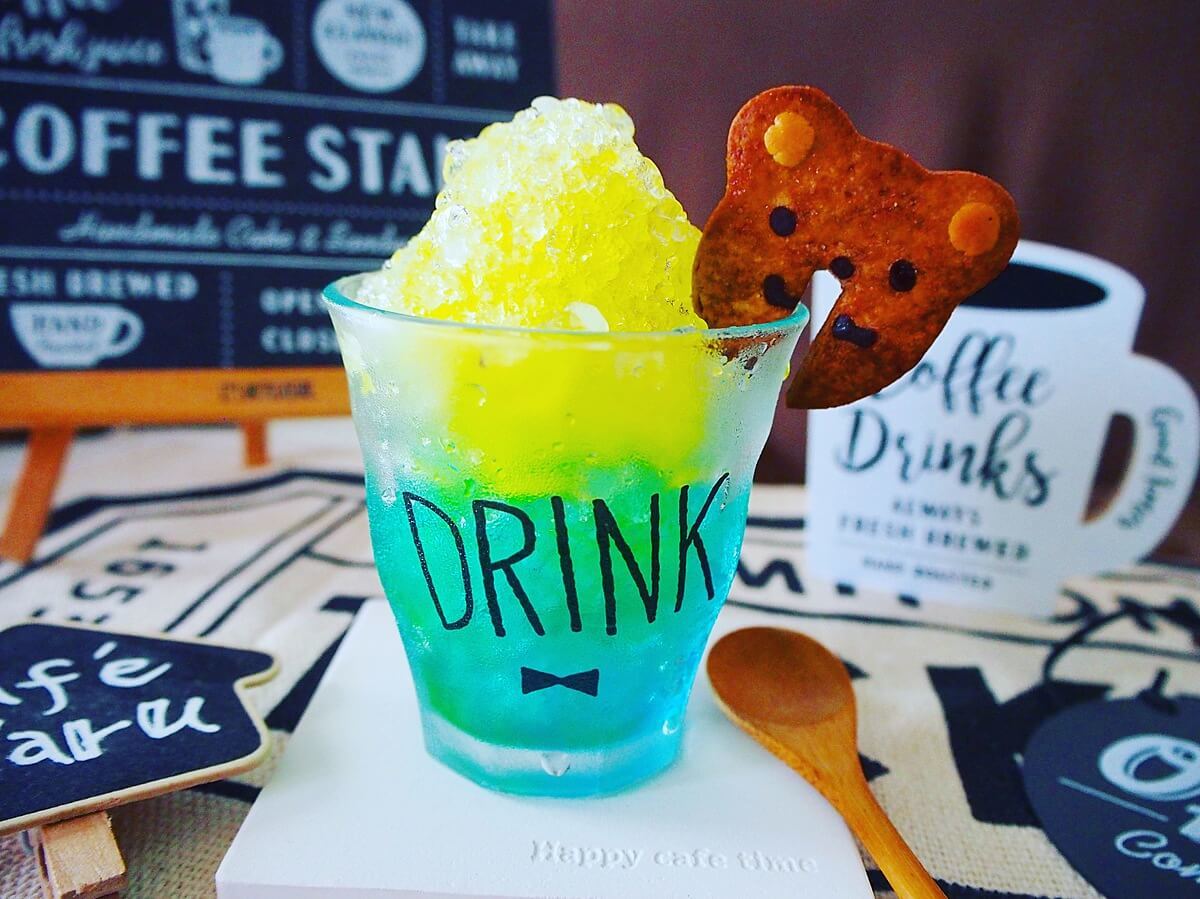 シロップをそのまま使った色だけでなく、青と黄色を混ぜて緑にしたり、青と赤を混ぜて紫色にしたり、組み合わせで様々なバージョンを作ってみても素敵!