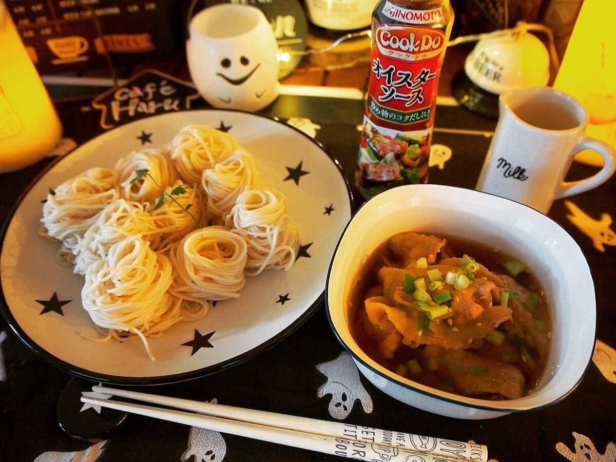 簡単に作れて家族からも好評なのが、豚肉をたっぷり入れた“つけ麺”スタイルのそうめんです。
