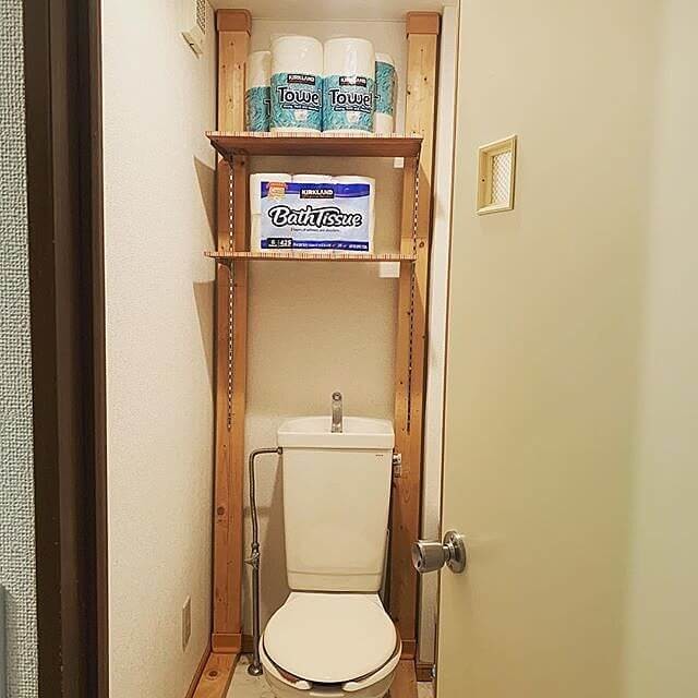 トイレは、トイレットペーパーやお掃除グッズなど収納しなければならないものがたくさんありますよね。@tomopepepeさんは、ディアウォールをトイレの収納として賢く活用されています!