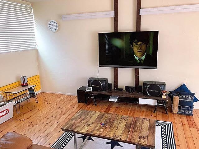 @konanlovenacchiさんは、ディアウォールを2本設置して、テレビを壁掛け風に設置しています。
