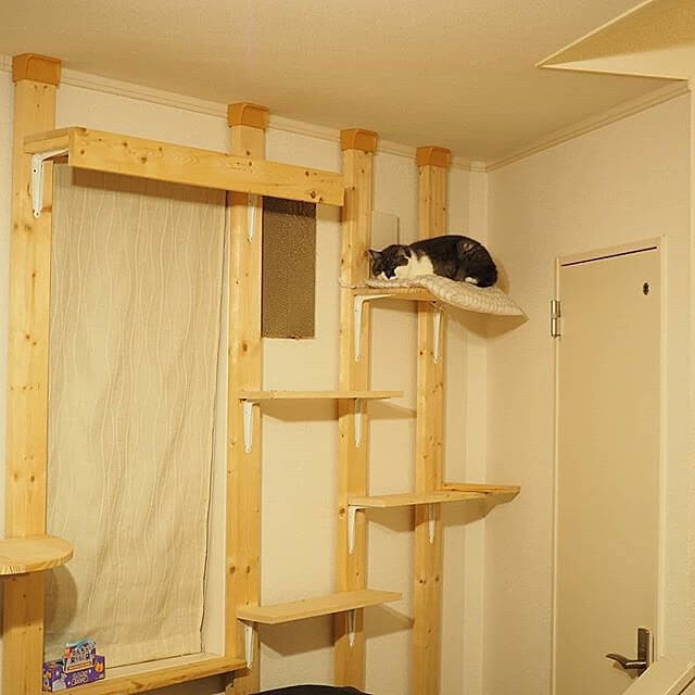 @panko_norioさんは、ディアウォールをまさかのキャットタワーとして活用!市販のものではなく、自らディアウォールを使用してDIYすることで、猫ちゃんの好みや性格に合わせて作れるのもうれしいですね。