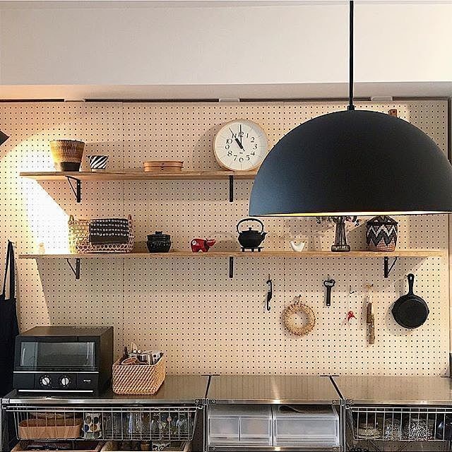 一面に棚やキッチン道具を掛けることができるので、活用方法は無限大!どんなスタイルのキッチンに取り入れても、おしゃれに決まりますよ。