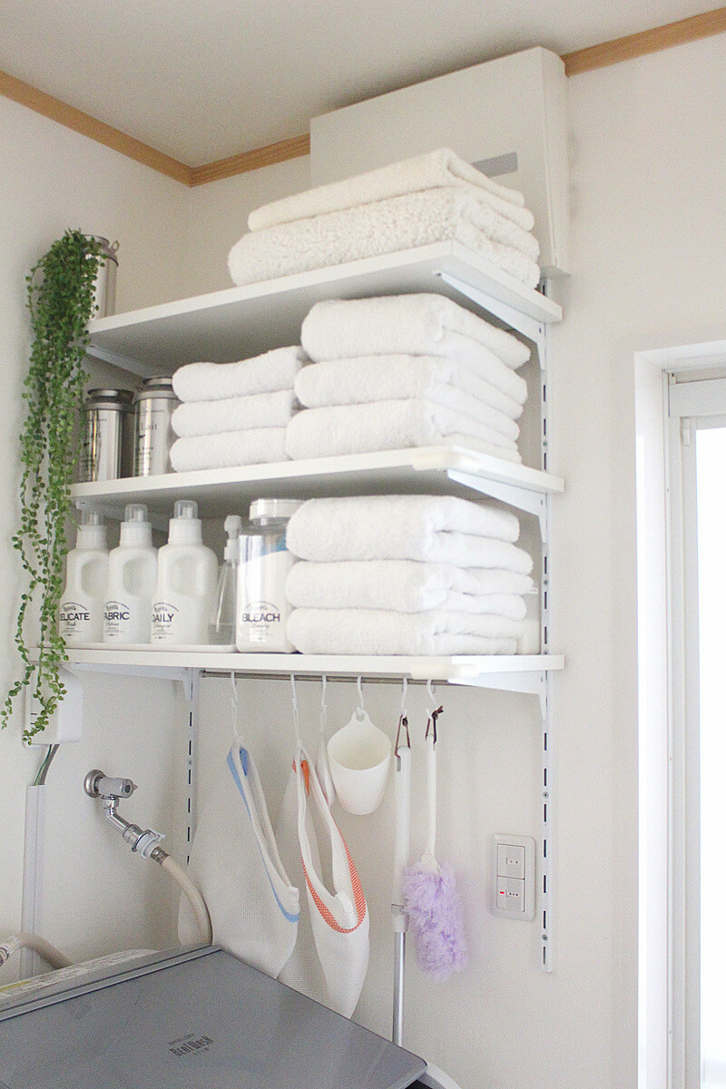 広さの割にモノが多い洗面所、限られたスペースをとにかく有効活用して無駄のない収納を作りたい場所です。