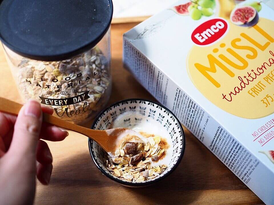 「ミューズリー」という言葉はあまり聞き慣れなれませんが、オーツなどの未調理加工穀物とドライフルーツ・ナッツ類などを混ぜ合わせたシリアル食品の一種だそう。