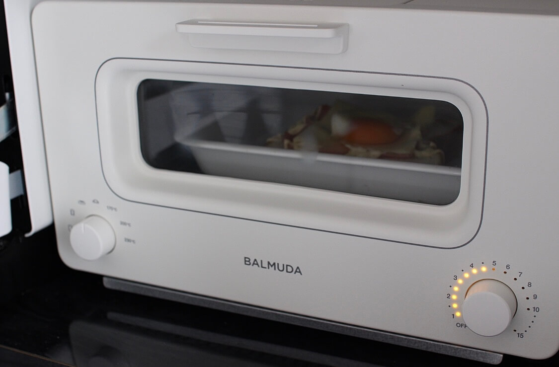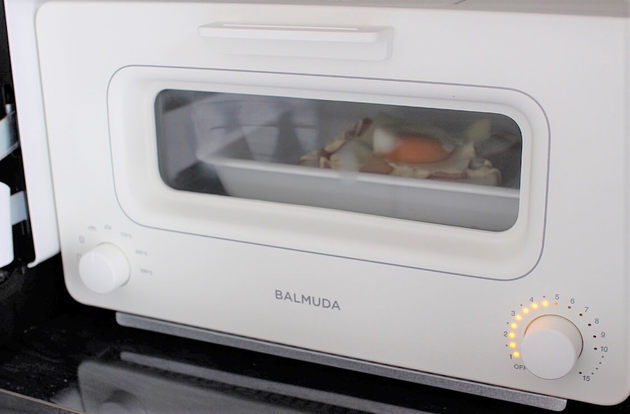 その上に作っておいた温玉を乗せて、バルミューダのトースターで焼くだけ♪