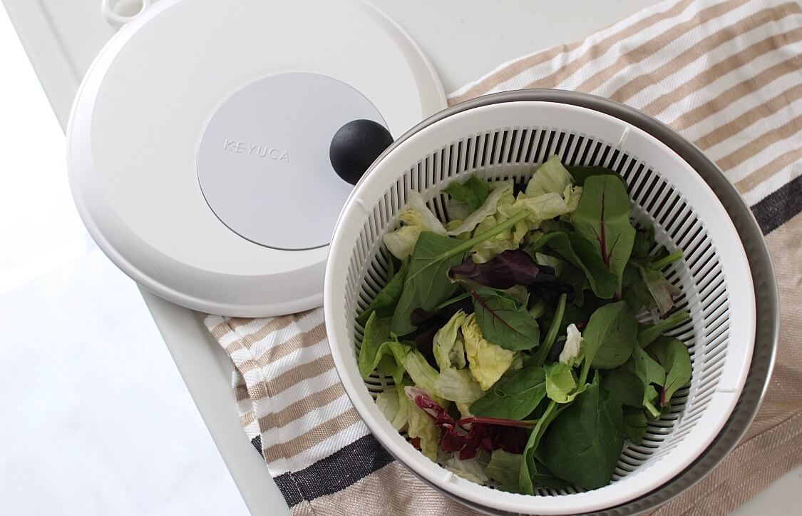 しっかり水気を切ったはずなのに、サラダスピナーだとこんなに水分がとれました。このまま保存も出来るので地味に手離せないキッチンアイテムです。