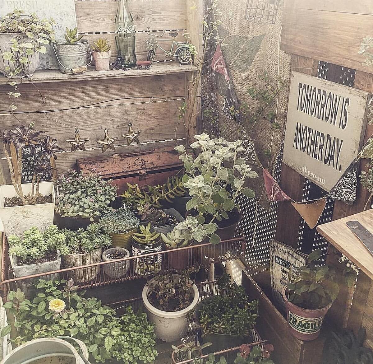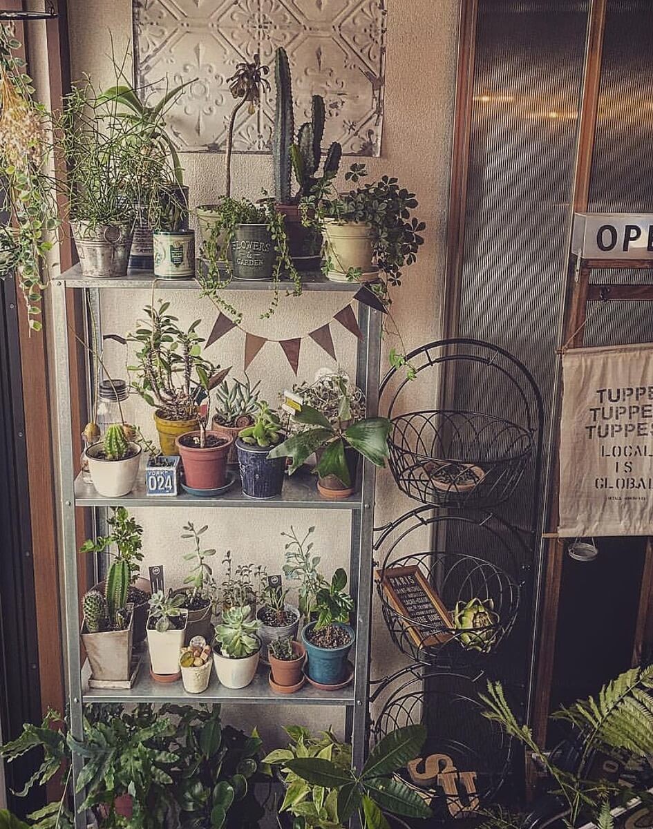 お気に入りの雑貨や小物の中にスパイスとしてグリーンを取り入れる事でディスプレイの完成度もあがります。
