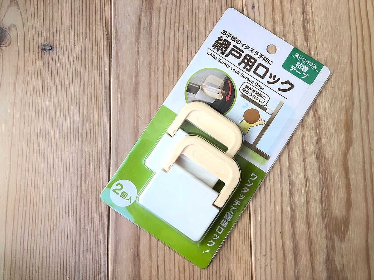 セリアで見つけた「網戸用ロック」、2個入り・108円です。
